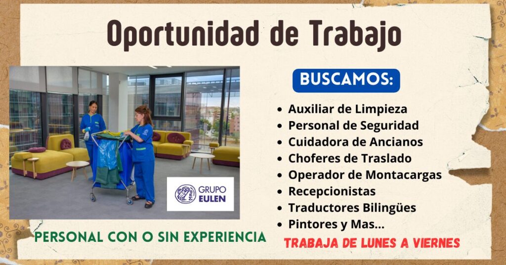 Grupo Eulen requiere personal para ocupar diferentes puestos.
